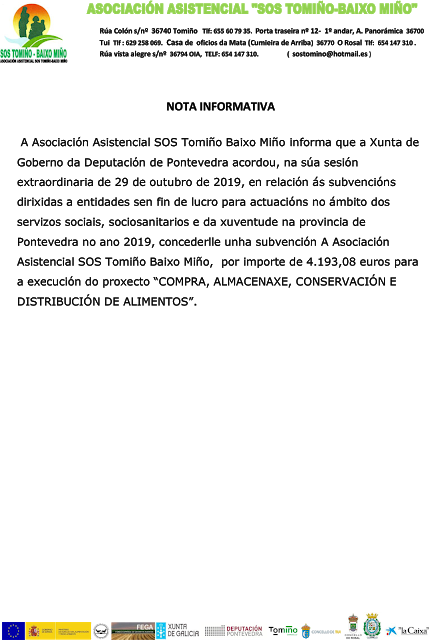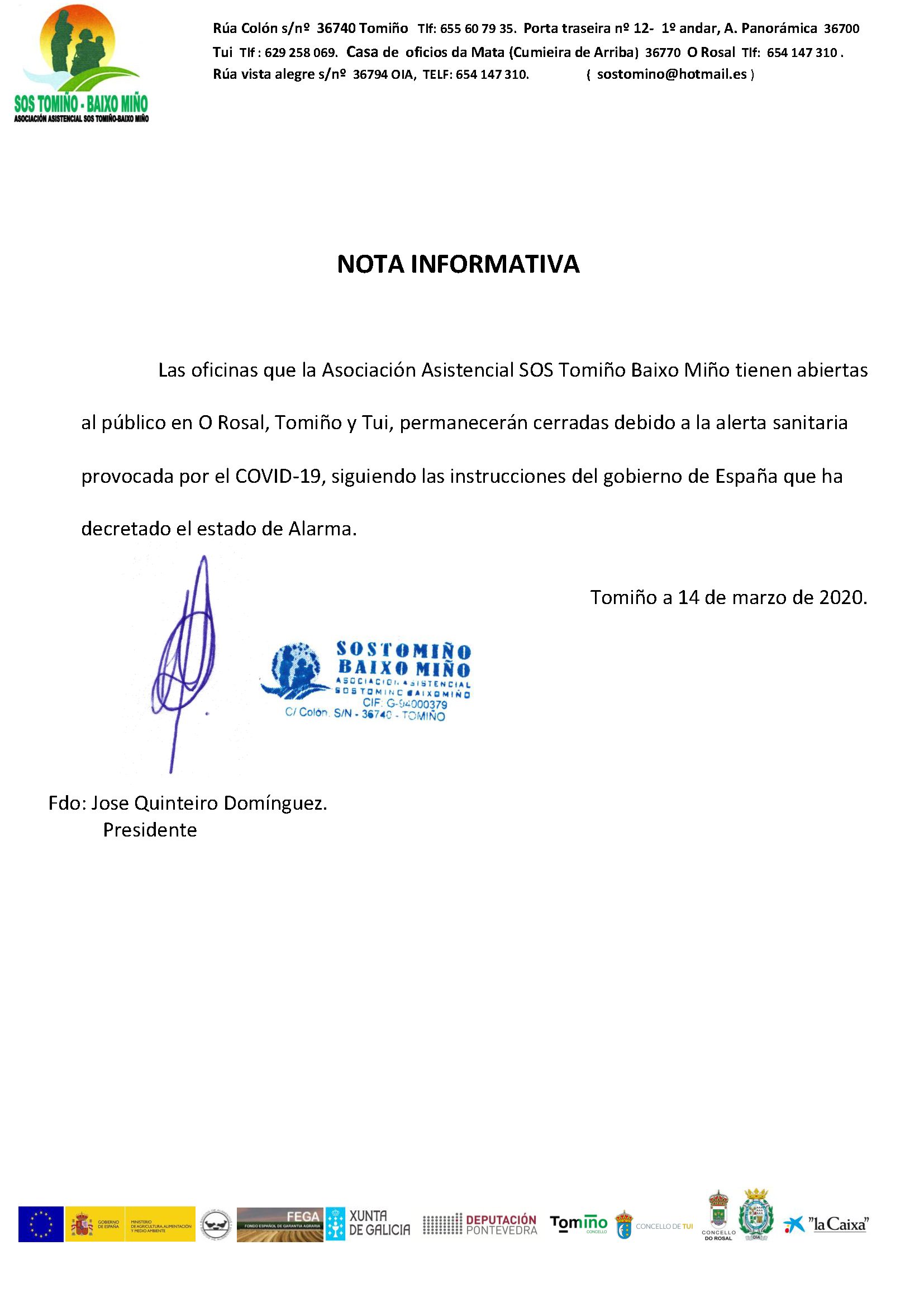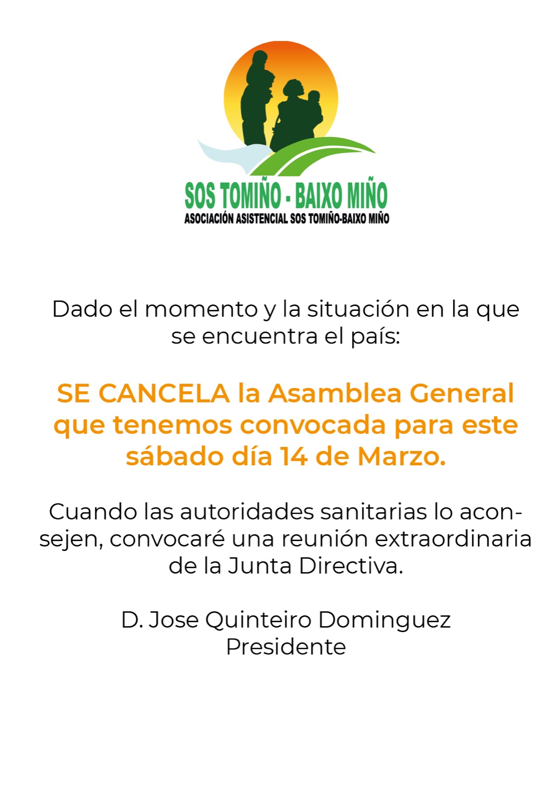Como consecuencia del estado de alarma decretado por el Gobierno, la Asociación Asistencial SOS Tomiño Baixo Miño adoptará medidas especiales con el fin de proteger al máximo tanto a nuestros …